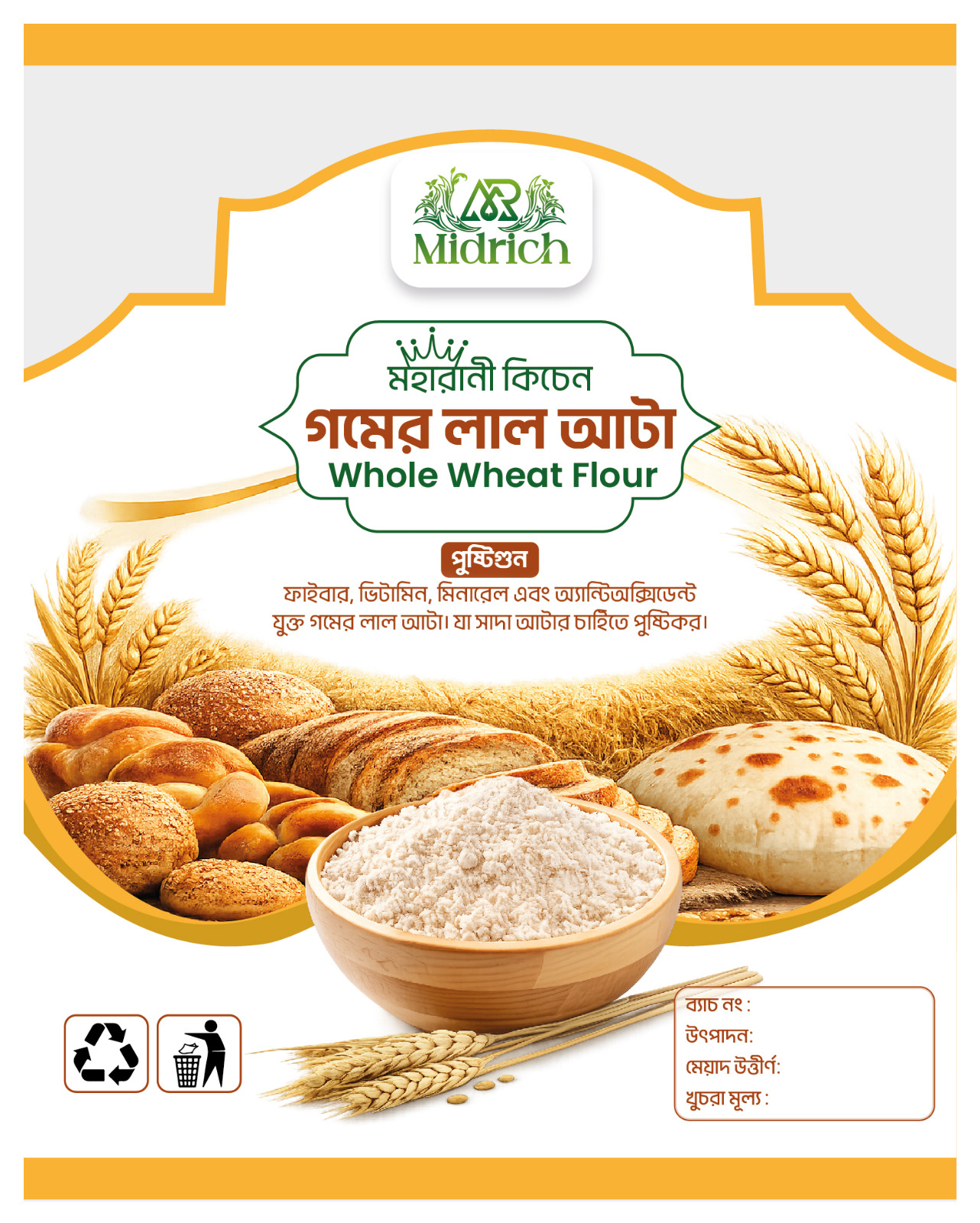 রুটি, পরোটা, পিঠা এবং অন্যান্য বেকিং আইটেমে ব্যবহারযোগ্য